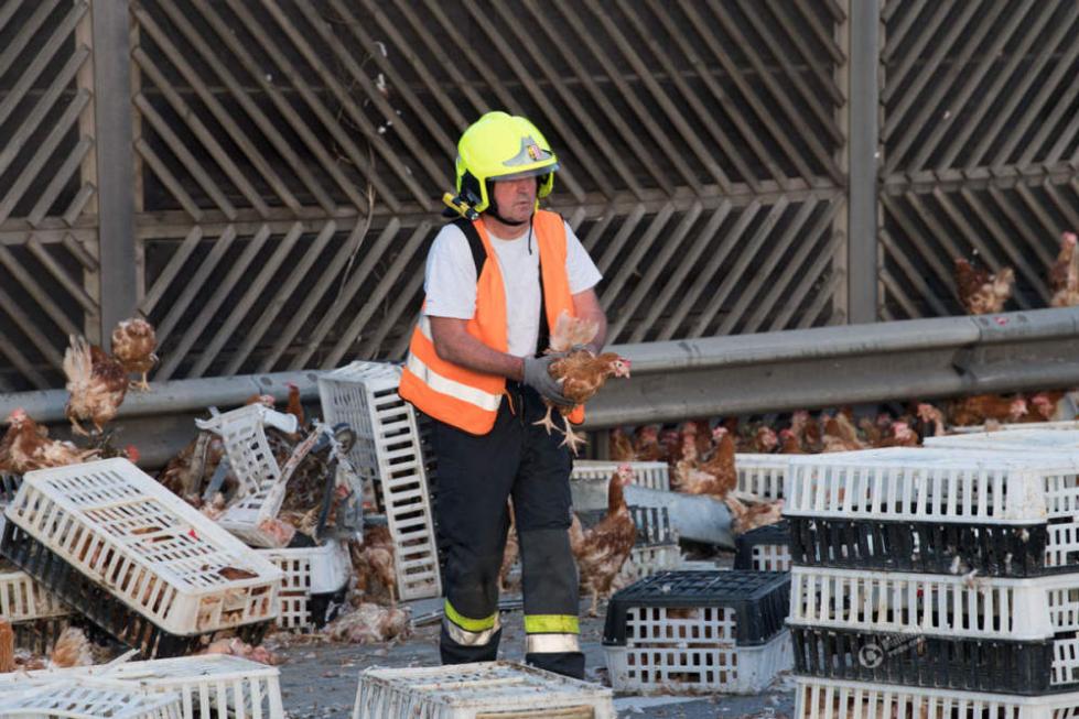 家禽卡车发生意外 7000只鸡“霸占”道路