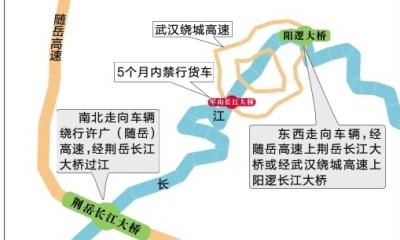 本报讯(通讯员苏杭)昨从省交通运输厅高速公路管理局(以下简称省高管局)获悉,京港澳高速湖北段武汉军山长江大桥将于7月30日起实施大修,当天上午9点至今年12月31日上午9点禁止货车通行,客运车辆不受限制。