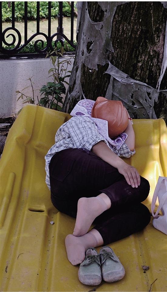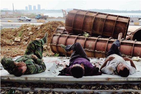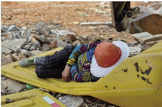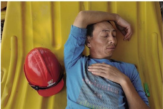 连日来,在金华市区正在建设的湖海塘公园工地上,有一群来自重庆、河南、陕西等地的务工者。每天,他们简单地用过午餐后,就在附近路边的树荫下或围墙边找个角落午休一二个小时,成为工地上一道另类的风景。