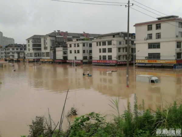 7月1日下午5点多,湖南宁乡沙河市场旁沩水河河水上涨迅猛,沙河桥被淹,洪水倒灌进一旁的沙河市场。用上千个沙袋堵溃口未果,后紧急转移2000多人,因一些商户舍不得货物,仍有1000余人被困楼上。来源:潇湘晨报