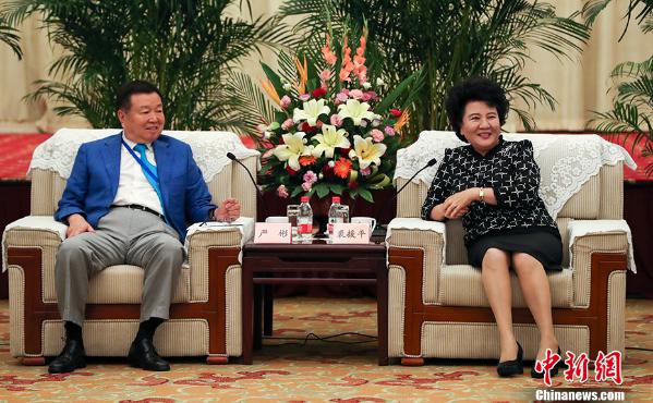 7月7日,裘援平与严彬博士交谈。当日,中国国务院侨务办公室主任裘援平在武汉东湖宾馆会见参加2017年“华创会”的华彬集团董事长、中国侨商投资企业协会常务副会长严彬博士,世界著名计算机学家、中国科学院院士姚期智等重要嘉宾。 中新社记者 张畅 摄