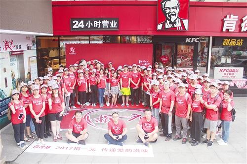 7月8日当天,百胜中国携旗下肯德基、必胜客品牌在广西的南宁、柳州、桂林三地同时举行第三届“为爱百胜行”爱心穿越的公益行走活动,近300名员工在不同的城市完成共同的爱心公益行,向路人及餐厅用餐客人传递公益精神。