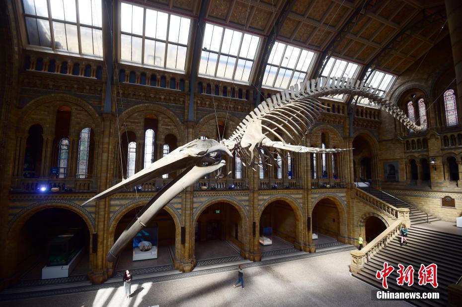 英国自然历史博物馆展出126岁蓝鲸骨骼