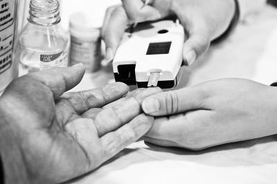 图为糖尿病患者正在测血糖。阿静摄/光明图片/视觉中国