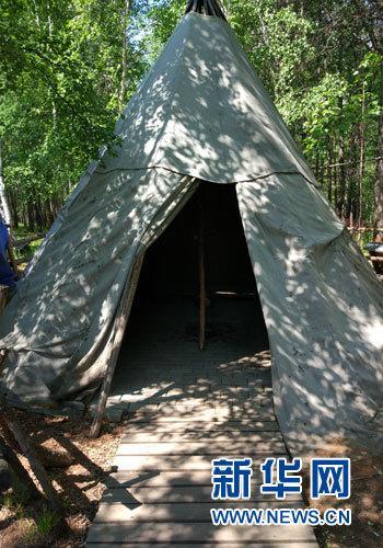 6月22日,敖鲁古雅使鹿部落景区,“撮罗子”状的棚子。新华网 张敏彦 摄