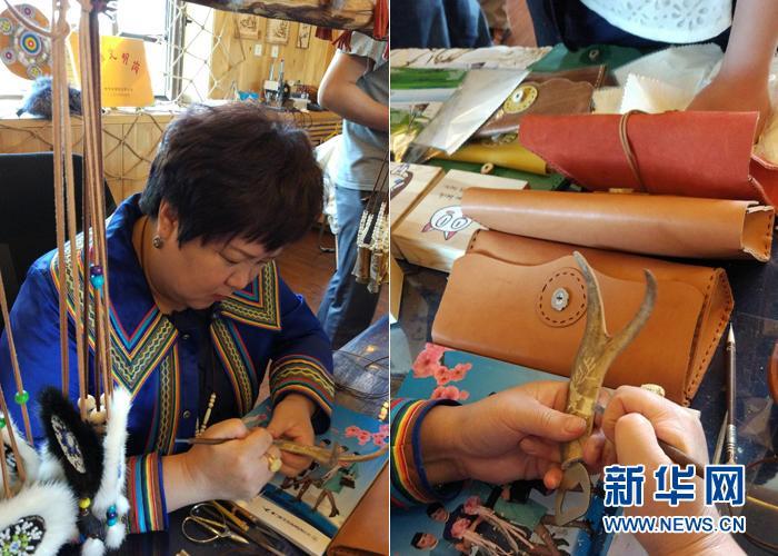 6月22日,敖鲁古雅鄂温克民族乡,当地居民正在制作手工艺品。新华网 张敏彦 摄