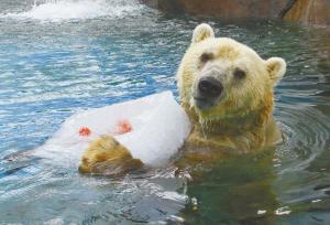 不仅是海象,海狮、海豹也有着同样的嗜好:晒太阳。“一到夏天,它们就喜欢睡觉,这也是它们的降温方式,睡着了以后,呼吸也会变慢,整个身体的温度也会适当下降。”高克乐告诉记者,其中,海象是最喜欢泡澡的,每天在馆外8小时,至少6小时都在泳池内。因为喜欢玩冰,在海洋管里,就属它的用冰数量最大,每天抱着冰块不放。