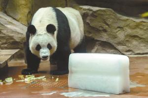 一大早,送冰的小货车就开进成都动物园,车上装了44块长方体冰块,都是成都动物园用作降温的“小妙招”。“我们还给它们准备了水果味的冰糕。”成都动物园饲养技术主管王利勤告诉记者,每年三伏天,整个动物园都在变着法儿地给动物们“降温”。