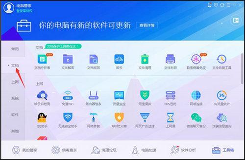 腾讯电脑管家12.7版本推出的文档保护八大工具,贯穿用户文档使用的全过程,满足了用户对备份文档、抵御病毒攻击、恢复文档和清除垃圾文件的多种需求。通过八大工具的配合使用,用户可以在各种文档问题中找到相应的解决方案,给予电脑文档最有利的安全保障。