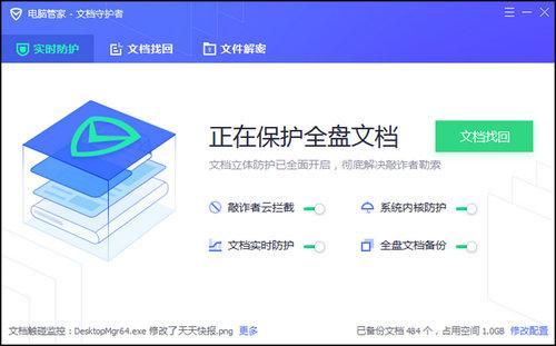 中新网7月26日电 伴随着网络中不安全因素的增加,为电脑安装一款靠谱的安全软件已经成为用户的基本共识,但大多数用户对于安全软件功能的使用,仅仅止步于日常的杀毒,缺乏对重要文档和个人信息的保护意识。近期频发的勒索病毒事件更是向大众发出警示,用户需要给予电脑文档更加全面的保护。近日,腾讯电脑管家12.7版本正式上线,推出文档守护者、文件解密、文档找回、微云、文件清理、文件粉碎、勒索病毒免疫和文件恢复工具的八大文档安全管理工具,为保护用户文档安全打造闭环新模式,帮助用户轻松解决文档保护问题。
