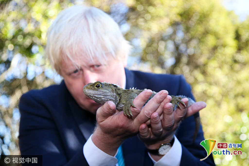 当地时间2017年7月25日,新西兰惠灵顿,英国外交大臣鲍里斯·约翰逊访问新西兰自然保护区玩性大发,手捧着一只蜥蜴仔细端详起来,这对于整日忙于政务的鲍里斯来说可谓是一次难得的体验。正是这些与各种动物的邂逅,展现出了政界和王室名人们不常为我们所见的逗趣有爱的一面,就让我们看看其他政界和王室的名人们都与动物擦出了怎样的火花?