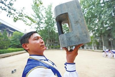 除了“一指禅王”的精彩绝技,在少林寺首届无遮大会上还能看到石锁竞技。在河南大学的一处操场上,第四代撂石锁非物质文化传承人鲍峰正带领着弟子们一起练习撂石锁。7公斤的石锁在他们手中变得轻盈起来,在空中上下翻飞。据了解,比赛中将根据所用石锁的重量确定名次,因此这个项目也被誉为“中国式举重”。除此之外,记者在现场看到,鲍峰将石锁抛起,石锁在空中翻转了270度后,他用拳面直臂顶起。鲍峰10岁就开始练习撂石锁,刚开始练习时,被石锁砸伤对于他已是“家常便饭”,但他从来没想过放弃。从2004年至今,鲍峰获得过7次全国撂石锁冠军。
