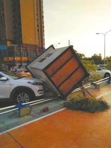 28号凌晨的大风,还将武侯区一个厂房的顶棚吹翻,停在旁边的多辆车辆砸坏。你说,这妖风是有多坏。