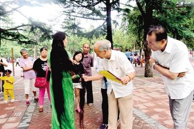 在一块草地上,樊利利站了一会儿,便有不少市民围拢过来。