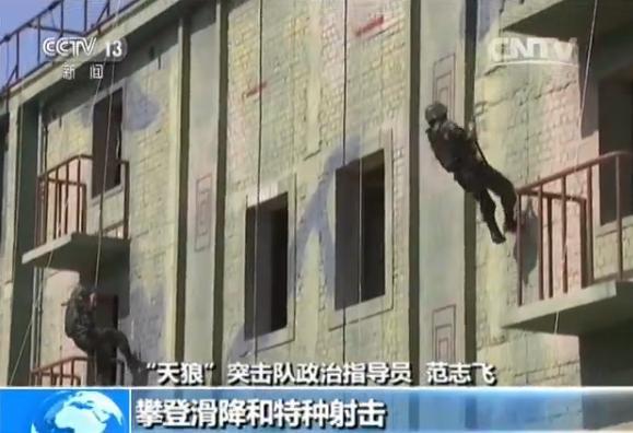 陆军第76集团军某旅“天狼”突击队政治指导员 范志飞:我是“天狼”突击队政治指导员范志飞。2秒钟5发弹,快,准,狠,是我们对射击最基本的要求,是我们队员对手枪速射的理解。我们现在正在进行的是攀登滑降和特种射击,这两个课目是反恐行动中最为实用的,它要求队员不仅要有很好的心理素质,还要有很好的身体素质,每一次成功的突入,对于人质来说,就多一分生的希望。