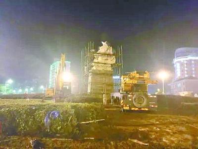 本报讯(记者陈奇雄) 花木兰骑马射箭的雕塑,是黄陂城区的标志性建筑,但在7月22日,其左手手臂折断,所持弓箭也不翼而飞。本报报道此事后,引起强烈反响。黄陂区相关部门连夜将断臂花木兰雕像拆除,并运往木兰山存放。