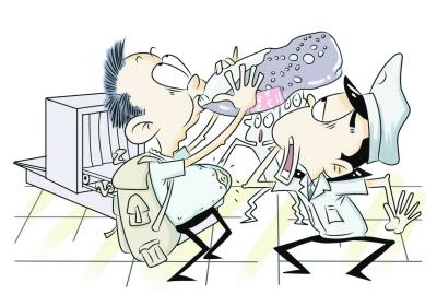 以上也还算能理解吧,起码说了就改,但故意出来吓人的就不对了。前几天在深圳机场的安检口,我前面排了位老阿姨,过安检门时仪器猛叫。安检员自然是重点排查她,用手持金属探测器一遍遍地从领口刷到裤脚管,都没发现什么,于是要她脱鞋检查。这下可把老阿姨惹炸毛了,扭扭捏捏了半天,一会儿发嗲说自己有脚气,怕熏到大家不礼貌;一会儿哭诉说自己袜子刚好破了个洞,要她脱鞋子这不是故意伤她自尊嘛;一会儿又撒泼说为什么前面过去的旅客都不用脱鞋子,就非要她脱,这明显是歧视,她要去向领导投诉……闹腾到最后,当然还是不得不脱了。不过老阿姨那浮夸的演技,别说骗不了经验丰富的安检员,连我们这些吃瓜群众都知道肯定有鬼了,纷纷不顾脚臭很奋勇地探过头去看热闹,鞋子脱了,里面居然藏了把小水果刀!安检员哭笑不得,我们都佩服得紧,亏阿姨想得出,脚底板下踩着把水果刀走路,就算不怕扎伤脚,那也硌得慌啊。安检员准备没收水果刀,阿姨还是不肯罢休,说上飞机要给小外孙削水果,没完没了地纠缠着那位年轻的安检员非要他通融通融……