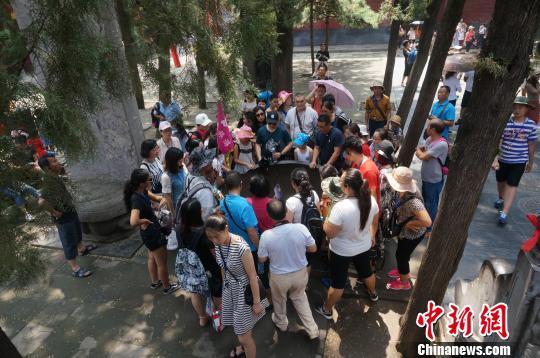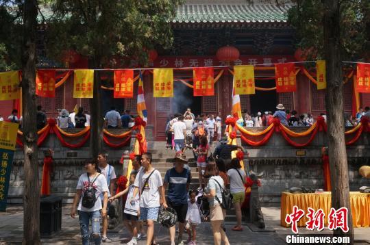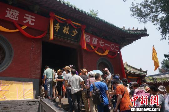 8月4日,河南嵩山少林寺内游人如织。目前正值暑期旅游旺季,并且恰逢有着1500多年历史的少林寺首次举办无遮大会,因此吸引了众多游人慕名前来。