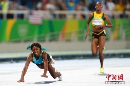 资料图:2016里约奥运会女子400米决赛,巴哈马选手米勒面对菲利克斯的穷追不舍,最后关头鱼跃俯冲惊险获得冠军。中新网记者 盛佳鹏 摄
