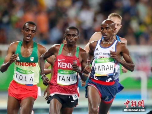 资料图:里约奥运男子万米决赛,英国选手法拉赫被绊倒后继续比赛,并仍成功卫冕奥运万米跑金牌。中新网记者 杜洋 摄
