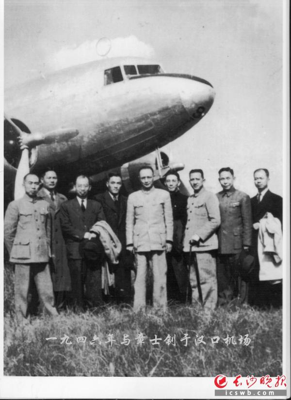 1946年,刘公武先生(右三)和章士钊先生等人在汉口机场。