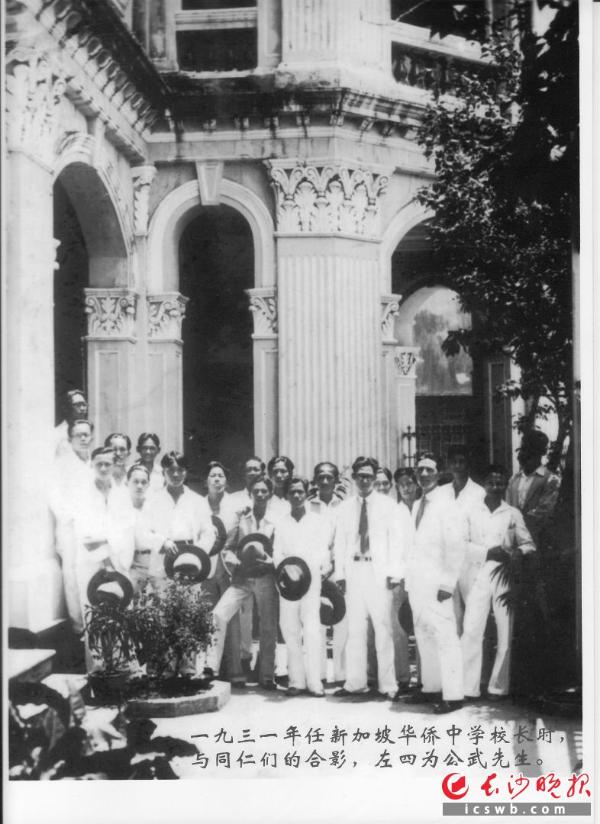 1931年,刘公武先生(右四)任新加坡华侨中学校长时与同仁们合影。