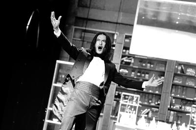 《变身怪医》的男主演之一刘令飞现场“试嗓”。本报记者 方非摄 |