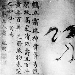 还有一位在影视剧中获以“铁齿铜牙”称谓的大学士,叫纪昀,也就是纪晓岚,他题下了“鹤立霜林,神骨耸秀,性洁故高,气清故寿,五百年黄,五百年元, 然物表,望之如仙”诗句,还在旁边绘制了一只仙鹤,这是纪晓岚画作首次被发现。