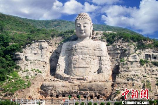 据介绍,蒙山大佛为跏趺式释迦牟尼坐佛,开凿于北齐年间,距今已有1462年。佛像高63米,比西方公认的世界第一大佛——阿富汗“巴米扬”大佛高10米,开凿年代比四川乐山大佛早162年,是目前世界上有确切纪年、开凿年代最早、体态最大的巨型摩崖石刻释迦牟尼佛像。