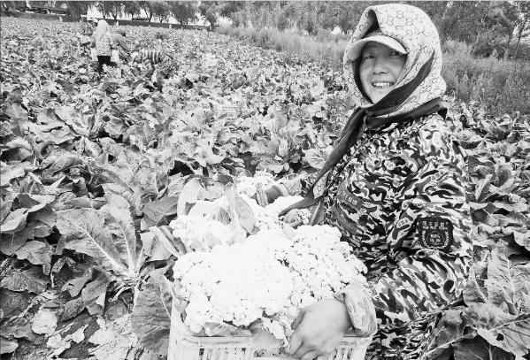 农民在散花菜地里采摘。