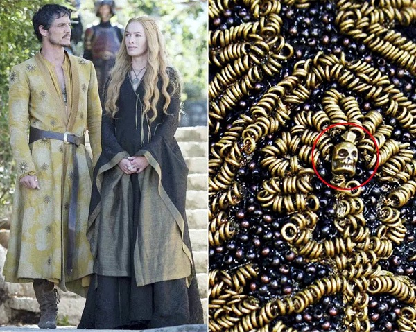 前五季的设计师米歇尔·克拉普顿和团队,跑遍博物馆,翻遍各种史料,研究了各国文化,再与人物环境性格相结合,进行设计。从龙妈衣服上的一针一线缝出来的龙鳞纹,