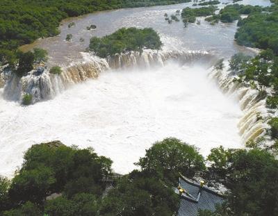 近年来,黑龙江省牡丹江市采取多项措施,镜泊湖生态环境得到有效的保护。近日,镜泊湖吊水楼瀑布,出现三面溢流的环形瀑布奇观,溢流宽度超过400米,达到历史最高值。年近六旬的狄焕然已经在吊水楼瀑布跳水34年,他的表演成为镜泊湖一道亮丽的风景。