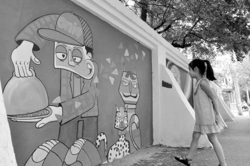 流连在这条小路上,仿佛置身在艺术的画廊,甚至会让人产生“人在画中走”的错觉。“涂鸦墙是风景,而欣赏涂鸦墙的市民也在不经意中成了画作的一部分。”有路过的市民感叹:“有句诗说得好,‘你在桥上看风景,看风景的人在楼上看你’,大概就是这种感觉。”