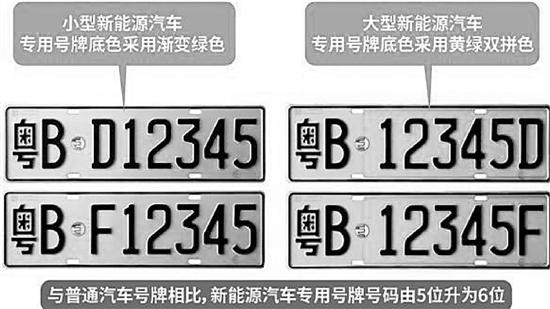 它还将分段管理,小型新能源汽车专用号牌的第一位先启用字母D、F(D代表纯电动新能源汽车,F代表非纯电动新能源汽车),大型新能源汽车专用号牌的第六位先启用字母D、F(D代表纯电动新能源汽车,F代表非纯电动新能源汽车)。