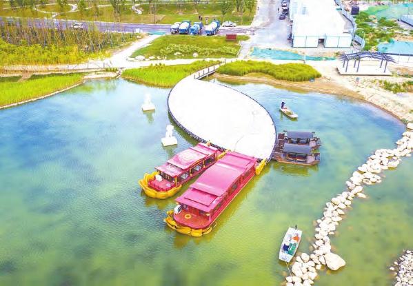渼陂湖水系生态文化修复一期工程中已经蓄水的萯阳湖风光秀美。