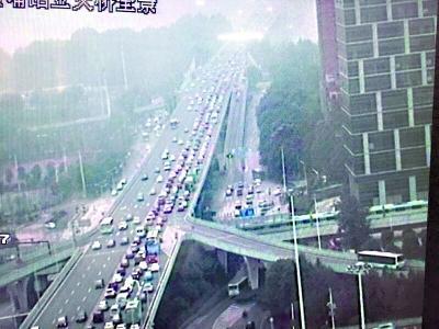 事发时长江二桥武昌方向交通严重堵塞 监控截图