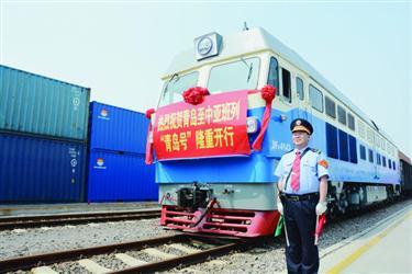 图为准备出发的青岛至中亚货运班列(资料照片)。 □新华社记者/张旭东 摄