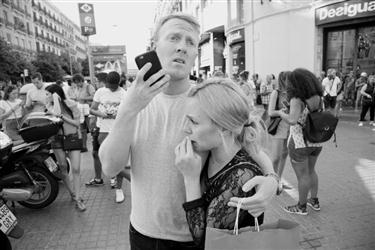 8月17日,在西班牙巴塞罗那,警察在恐袭现场工作(上图)。人们在恐袭发生后撤离(下左)。人们在恐袭发生后惊魂未定(下右)。 □新华社发
