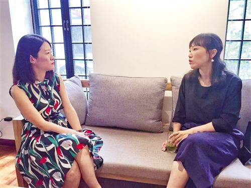 张悦然(右)与行超在畅聊文学