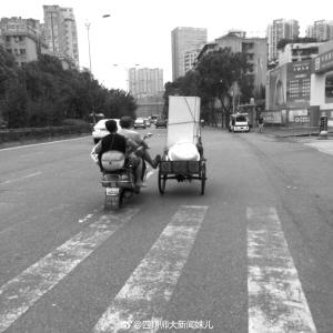 “回金牛万达的路上,一辆人力三轮车载着满满一车东西,骑得很慢。后面一名骑电瓶车的叔叔用脚蹬着前面三轮车的车尾助其前行。据观察,两人并不认识”。7月17日,网友“@四川师大新闻妹儿”在成都街头拍下了暖心一幕,并称“被感动了”。截至记者发稿时,该微博已有近500条评论,点赞达到7434次。