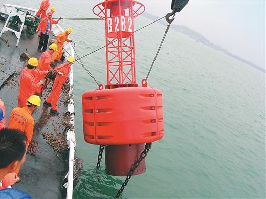 2016年12月,“海巡1703”船在北海铁山港区内,仅用两天就吊换抛设完成15座浮标,保证了BZ航道段疏浚二期扩建工程在元旦前竣工验收。这个速度,刷新了北部湾同时吊换抛设浮标的纪录:30年前需要30天,15年前需要7天以上。