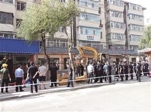 在朝阳区东煤新村18、19、20栋楼下的同德路上,多年形成了一条餐饮街。因为3栋住宅楼下,原先都规划有小院,一楼经营餐饮店的商户纷纷扩建店面,占领了小院。在炎热的盛夏,食客们坐在院子里吃饭,喧嚣声、餐饮店的排风机响声通宵达旦,油烟弥漫,让居民们苦不堪言。8月21日,根据市、区政府关于拆除东煤新村18、19、20栋在同德路便道上的违法建筑的指示要求,红旗街道办事处联合相关部门于2017年8月21日(星期一)7时对东煤新村18、19、20栋在同德路便道上的15处1600余平方米的违法建筑依法进行拆除。 拆违警方维持秩序