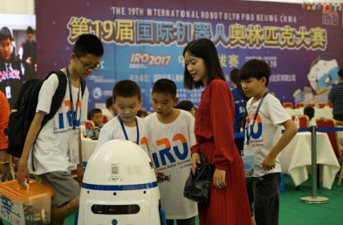 中新网8月22日电 8月19日-20日,第十九届国际机器人奥林匹克大赛中国选拔赛在京,500多名小选手展开11个项目的角逐。作为此次活动的战略合作方,北京进化者机器人科技有限公司的小胖机器人也来到现场,进行迎宾引导、现场讲解,并和众多小选手及家长互动。