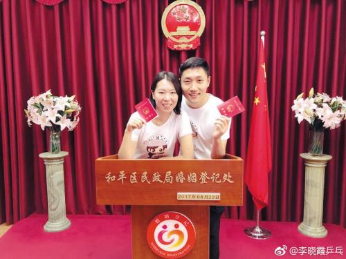 “2017年8月22日,我们领证了,我的人生多了一个本,我的生活多了一个他。过去的二十几年有乒乓为伴,而未来的几十年,有他风雨相伴。我是幸福的,我们会一直幸福!”李晓霞还透露,两人婚期定于9月10日,这正是全运会结束后的日子。