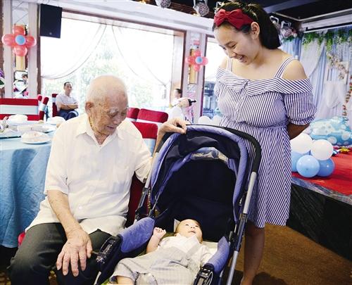 8月13日下午,在潘新政曾外孙的百日宴上,记者看到他正拿着一份报纸翻看,并且能读出上面的内容。“虽说我爸已经是101岁高龄,但他的听力、视力都很灵敏,看报也都不用戴老花镜。”潘琼芳说。