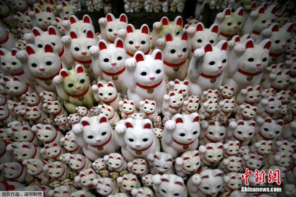 当地时间2017年8月23日,日本东京,Gotokuji寺庙被大大小小的招财猫“占领”。“招财猫”是日本传统文化中常见的猫型偶像摆设,被视为一种招财招福的吉祥物。