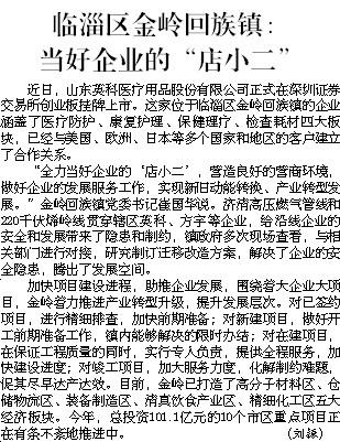 近日,山东英科医疗用品股份有限公司正式在深圳证券交易所创业板挂牌上市。这家位于临淄区金岭回族镇的企业涵盖了医疗防护、康复护理、保健理疗、检查耗材四大板块,已经与美国、欧洲、日本等多个国家和地区的客户建立了合作关系。