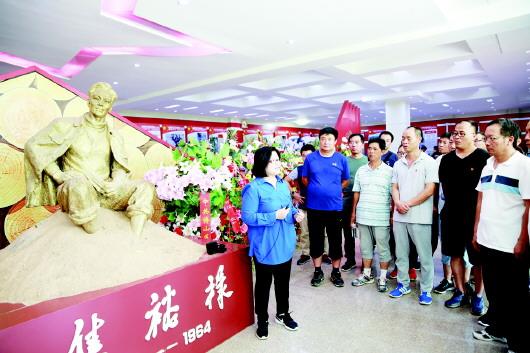 8月16日,焦守云(左一)与博山老百姓来到焦裕禄纪念馆,重温裕禄精神。