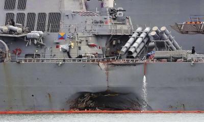 就在“麦凯恩”号相撞事件数天前,美军处分“菲茨杰拉德”号驱逐舰多名官兵,认定舰长“缺乏领导能力”、舰员“航海技术糟糕、放哨时出现失误”,从而导致相撞。(新华社专特稿)