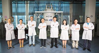 王文超、张欣、张钠、王俊峰、刘青松、刘静、林文楚、任涛(从左至右)在中科院合肥物质科学研究院强磁场科学中心。